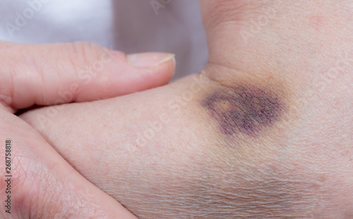 © Rainer Fuhrmann, Fototapeta premium A strong hematoma due to a wrong injection. Concept medical mistakes.