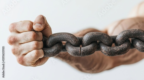 Obraz premium A strong male hand gripping a heavy chain, symbolizing strength and...