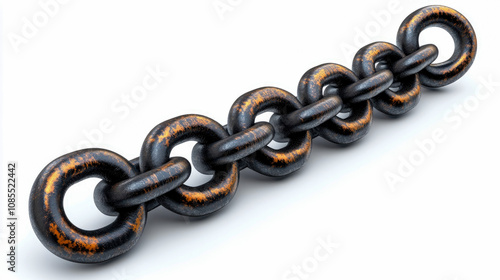 Obraz premium A strong metal chain features large circular links arranged in a line,...
