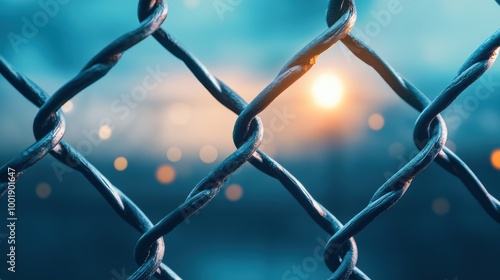 Fototapeta premium A strong metal fence surrounding a secure facility, symbolizing physical...