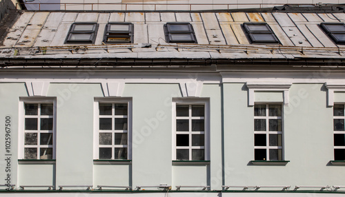 © Darya, Fototapeta premium A structure featuring a rooftop adorned with several skylights