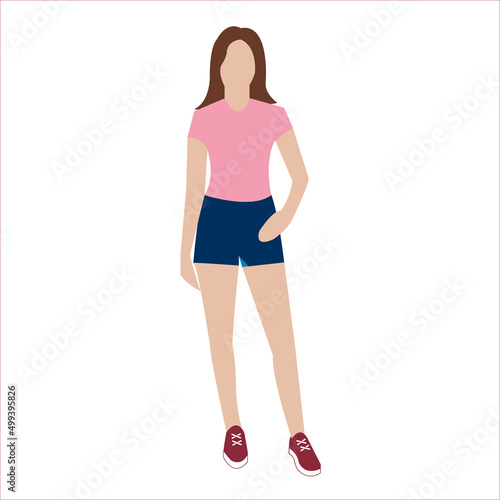 © Ирина Белогурова, Fototapeta premium A student girl in shorts stands on a white background
