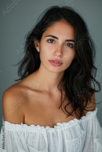 © Nica, Fototapeta premium A studio headshot portrait of a young woman in her mid-twenties with Cuban heritage.