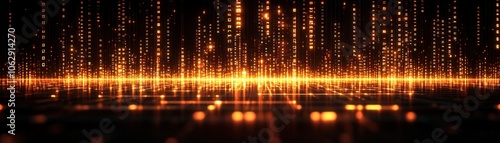 Naklejka premium A stunning abstract background featuring golden elements and glowing light reflections, perfect for digital and technological themes.