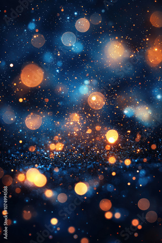 © Janjira, Obraz premium A stunning abstract background featuring shimmering bokeh lights in vibrant colors over a dark blue backdrop, perfect for creative projects.