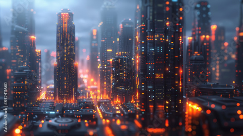 Fototapeta premium A stunning aerial view of a futuristic cityscape at night, illuminated by...
