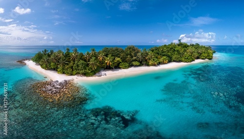 Obraz premium A stunning aerial view of a hidden tropical island, surrounded by lush...