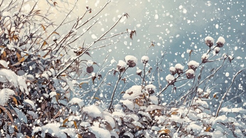 Fototapeta premium A stunning and breathtaking winter landscape showcasing snowladen branches...