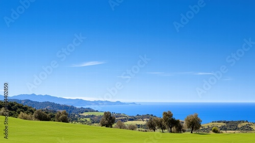Fototapeta premium A stunning and expansive view of a lush green field under a bright blue sky...