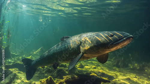 Fototapeta premium A stunning arapaima swimming in the Amazon River