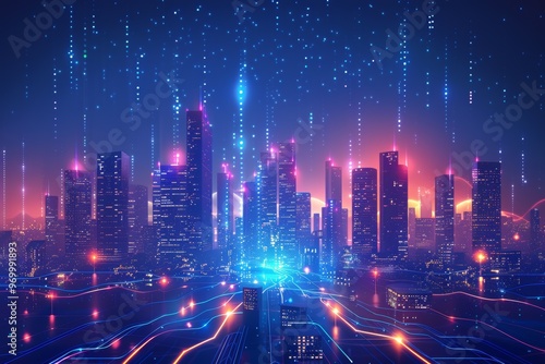 Fototapeta premium A stunning, breathtaking cityscape featuring vibrant neon lights that create a captivating digital aesthetic