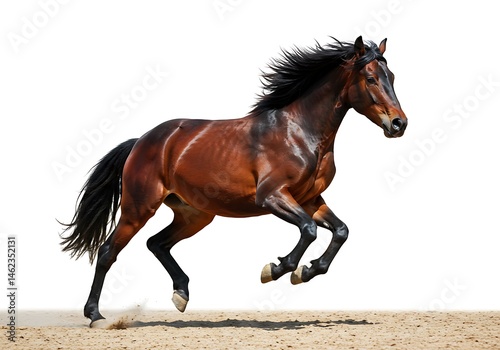 Obraz premium A stunning brown horse with a flowing black mane galloping freely across a sandy surface outdoors today
