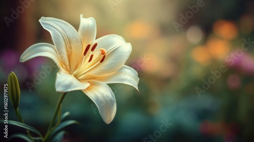 © Lumevia, Fototapeta premium A stunning close-up of a beautiful, creamy white lily.
