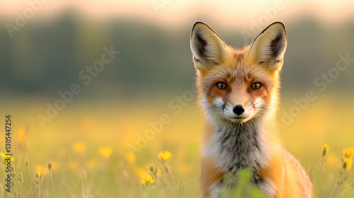 © GenBy, Obraz premium A stunning close-up of a fox in a vibrant field of wildflowers, showcasing its expressive eyes and rich orange fur against a soft, blurred background. Nature at its finest.