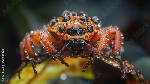 © samrit, Naklejka premium A stunning close-up of a ladybug on a fresh leaf with dew drops shimmering like tiny jewels in this natural macro shot