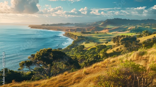 © DigitalDruid, Obraz premium A stunning coastal view captured from a hilltop