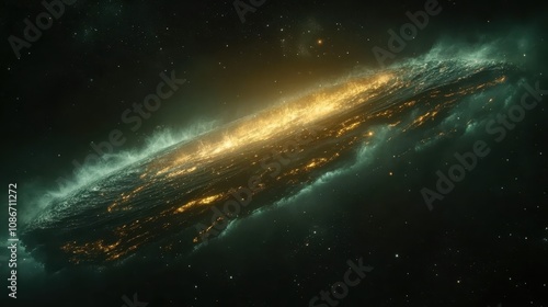 Fototapeta premium A stunning cosmic image of a glowing galaxy, featuring a bright central band...