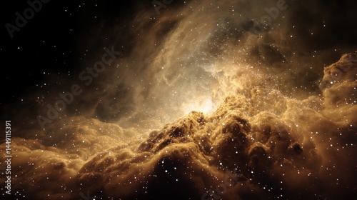 © Jesse, Fototapeta premium A stunning cosmic landscape featuring a nebula filled with swirling clouds of gas and dust illuminated by countless sparkling stars. The scene captures the ethereal beauty of space, with a vibrant gol