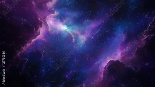 Fototapeta premium A stunning cosmic nebula filled with vibrant purple and blue hues, showcasing...