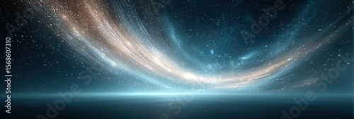 © Ohana, Obraz premium A stunning cosmic scene depicting the beauty of the universe with waves of stars and a tranquil ocean below.