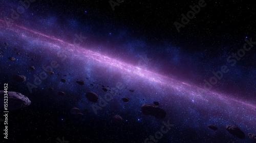 Naklejka premium A stunning cosmic view showcases a vibrant galaxy ribbon in shades of purple....