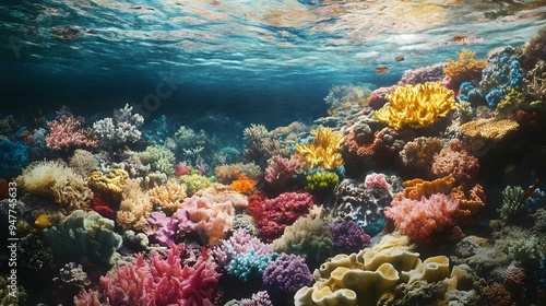 © Mr image, Fototapeta premium 112. "A stunning 3D depiction of a vibrant coral reef teeming with colorful marine life and clear water