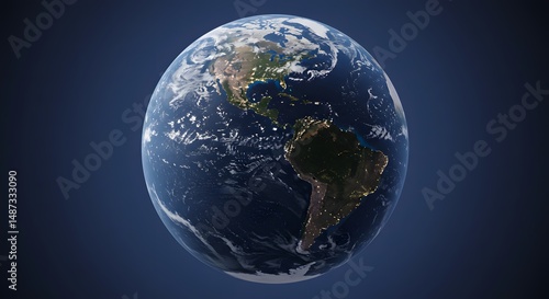 © HariBudi, Fototapeta premium A Stunning 3D Render of Earth Highlighting North and South America at Night