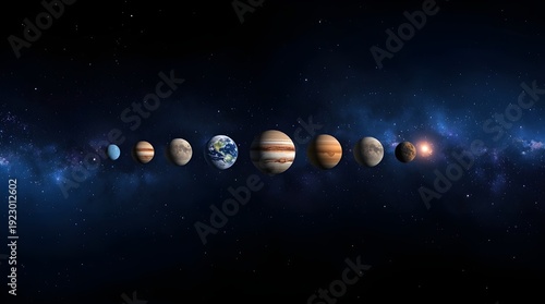 Fototapeta premium A stunning 3D visualization depicts the rare cosmic event of six planets aligning side by side in the night sky.