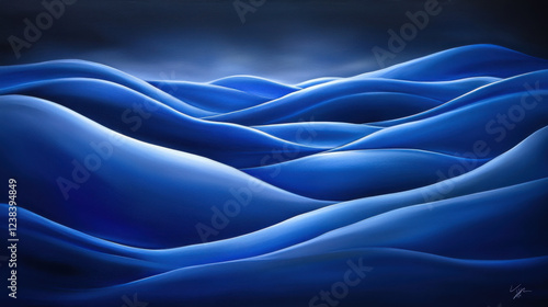 Fototapeta premium A stunning digital artwork featuring fluid, organic blue waves blending...