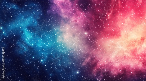 © FINS, Naklejka premium A stunning digital illustration of a nebula filled with stars and cosmic dust, in vivid hues of blue, purple, pink, red, and yellow.