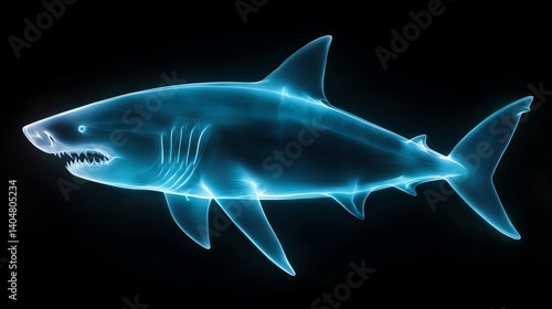 Obraz premium A stunning digital illustration of a translucent shark glowing against a dark...
