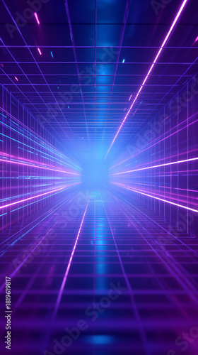 Fototapeta premium A stunning digital scene features glowing neon lines radiating in all directions, forming an endless tunnel