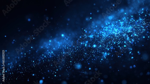 Fototapeta premium A stunning display of blue particles fills the space, resembling stars in a vast night sky. The dynamic effect creates a sense of depth and wonder, engaging the viewer's imagination.