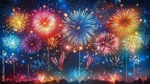 Fototapeta premium A Stunning Display of Colorful Fireworks Against a Starry Night Sky in...