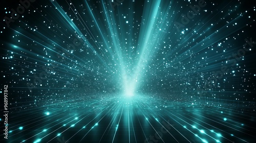 © Tackey, Naklejka premium A stunning display of dynamic light rays bursting through a dark background, creating an ethereal and mystical atmosphere.