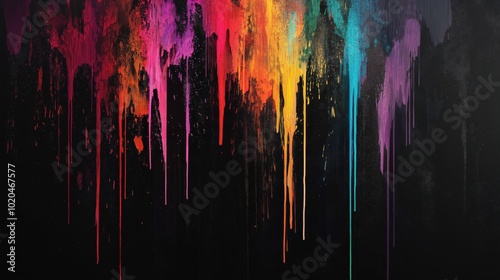 © ArtistiKa, Obraz premium A stunning display of vibrant colors dripping down a dark background, creating abstract art with emotion.