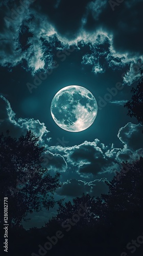 © Ben Kuang, Fototapeta premium A stunning full moon illuminates a night sky filled with clouds.