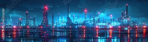 Obraz premium A stunning futuristic industrial cityscape illuminated by neon lights at...
