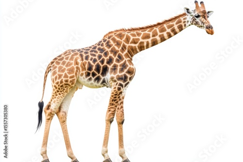 © Kust, Obraz premium A Stunning Giraffe Stands Tall in Profile, Showcasing Its Unique Coat Patterns and Graceful Posture Against a Clean Background