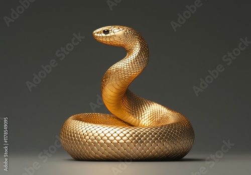 Fototapeta premium A Stunning Golden Snake Sculpture Displayed Against a Dark Background...