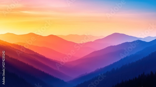 © Alex, Fototapeta premium A stunning gradient of colors paints the mountain range during sunset, showcasing the beauty of nature in a breathtaking view
