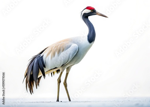 © Autun, Obraz premium A stunning, high-resolution image of a Black-necked Crane, isolated on a white background, showcases intricate detail and sharp focus.