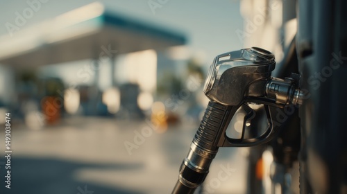 Naklejka premium A stunning image of gas nozzle at gas station, fuel concept.