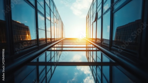Fototapeta premium A stunning low-angle view showcasing glass buildings reflecting the vibrant...