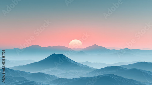 © GS creator , Fototapeta premium A stunning minimalist background of a single mountain unicake against a gradient sky