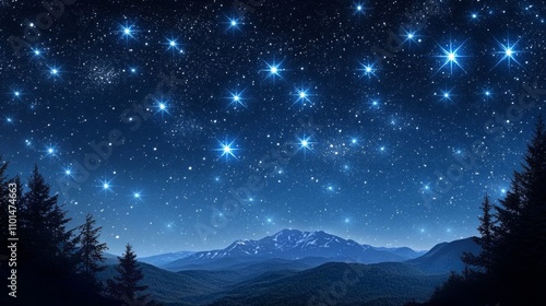 Fototapeta premium A stunning mountain range silhouetted against a starry backdrop.