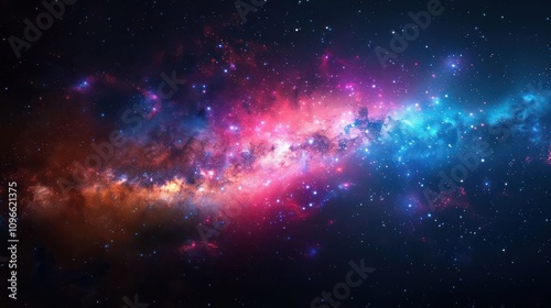 Naklejka premium A stunning nebula in space, with vibrant colors of pink, red, blue, and yellow.