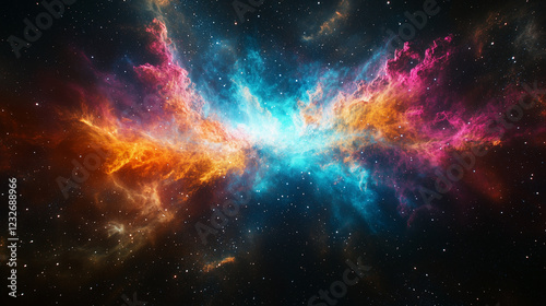 Naklejka premium A Stunning Nebula of Colors and Light in the Depths of Space, Where Stars are Born and Worlds Begin