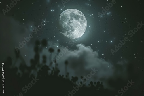 Fototapeta premium A stunning night scene featuring a glowing moon surrounded by twinkling stars...