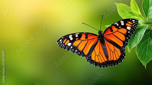 © MUMTAZ, Fototapeta premium A Stunning Orange Butterfly on Lush Green Leaves